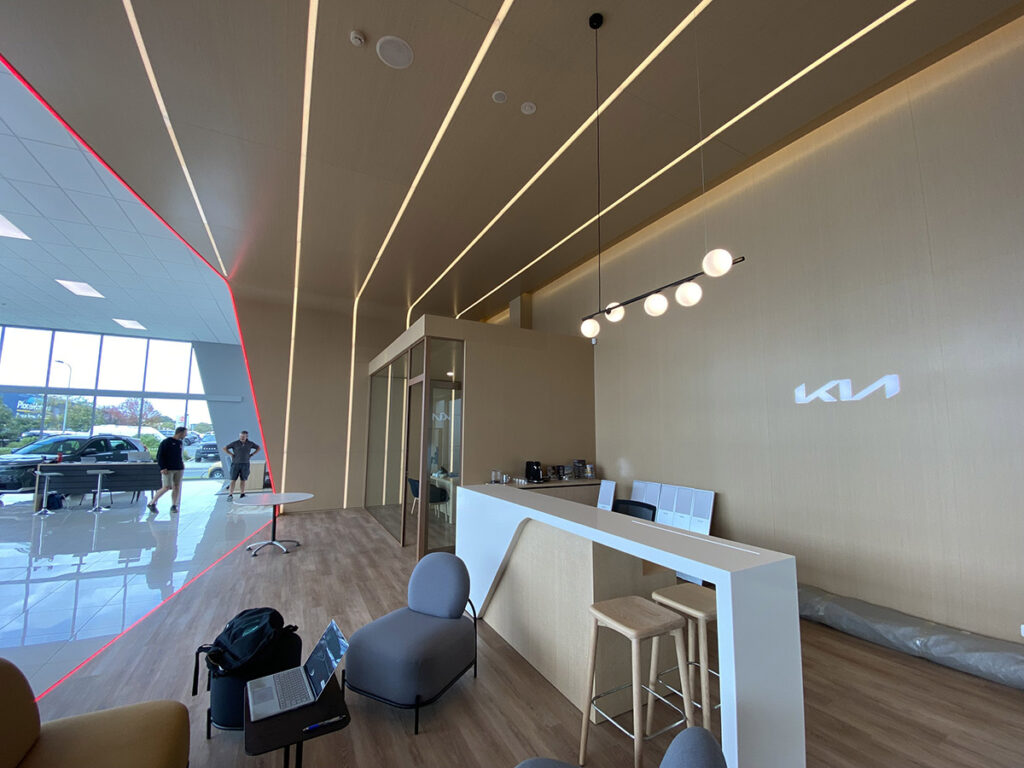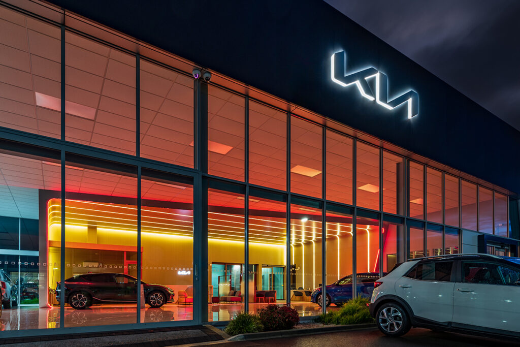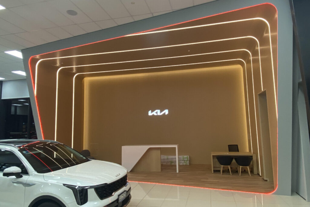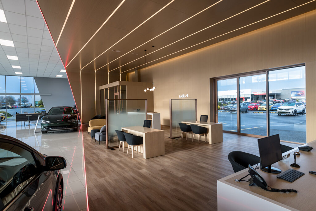 Being a part of the Kia NZ new branding roll out we have completed five sites around New Zealand. From Whangarei to Ashburton, we have completed new sales areas which create a luxurious modern feel. Using high quality LED products to provide a design like no other while meeting Kia principles of being energy efficient.