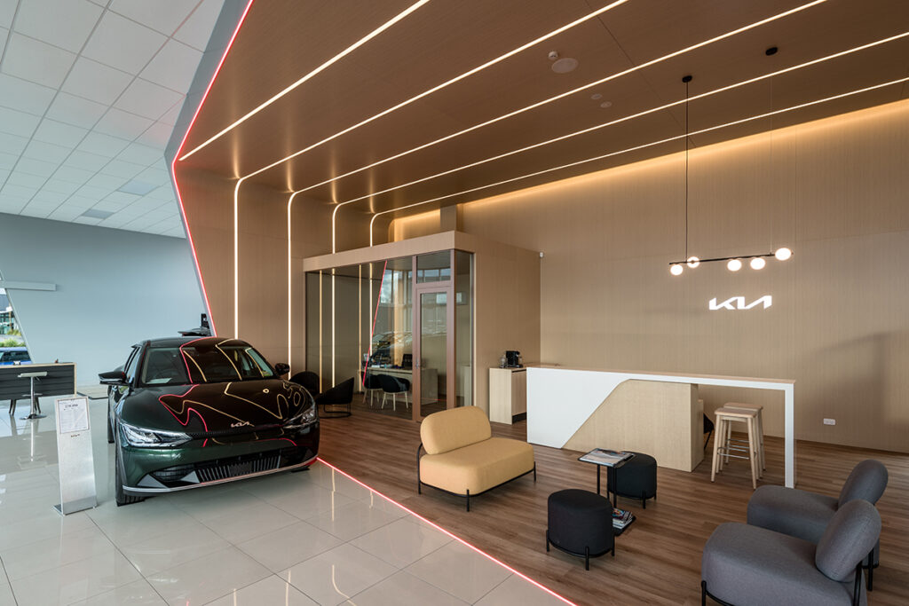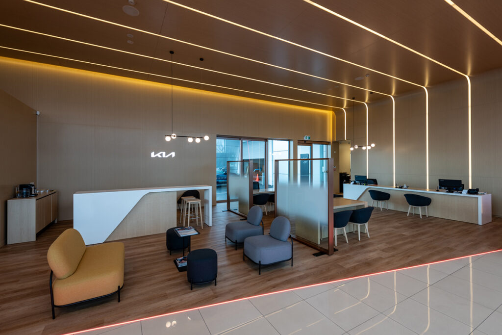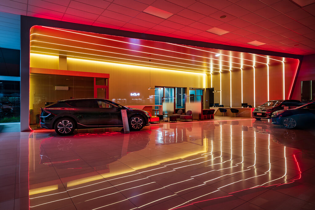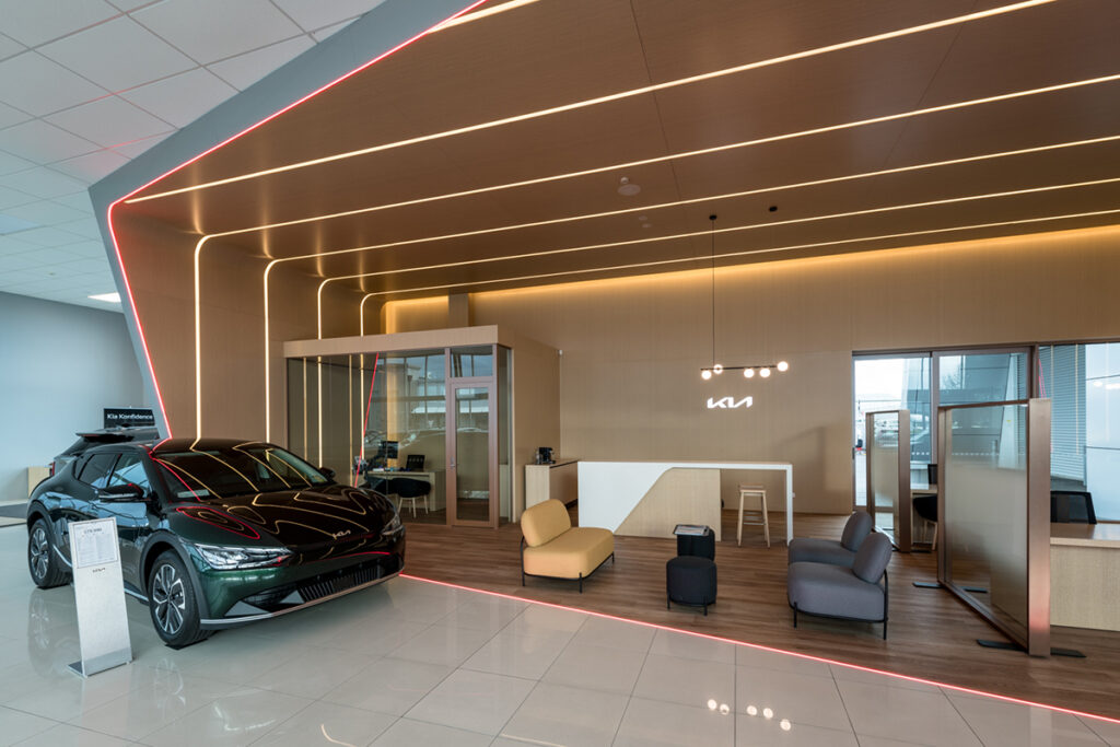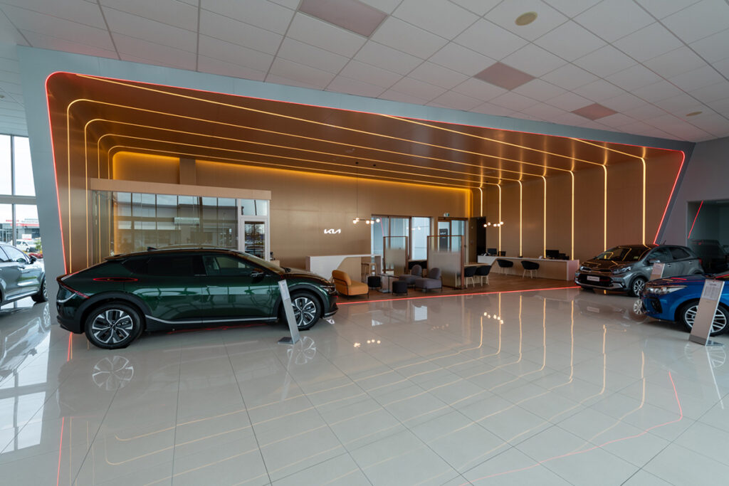 Being a part of the Kia NZ new branding roll out we have completed five sites around New Zealand. From Whangarei to Ashburton, we have completed new sales areas which create a luxurious modern feel. Using high quality LED products to provide a design like no other while meeting Kia principles of being energy efficient.